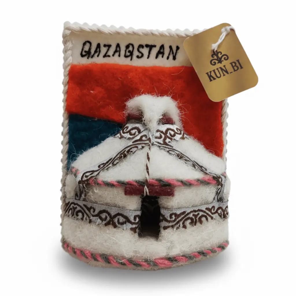 Изделие изготовлено из тех же материалов, что и настоящая кочевая юрта — из натурального войлока. Мастер вручную воссоздал все ключевые элементы: от священного шанырака (купола) до узорных лент (баскуров), опоясывающих жилище. Мягкая шерсть хранит тепло рук и передает атмосферу уюта.