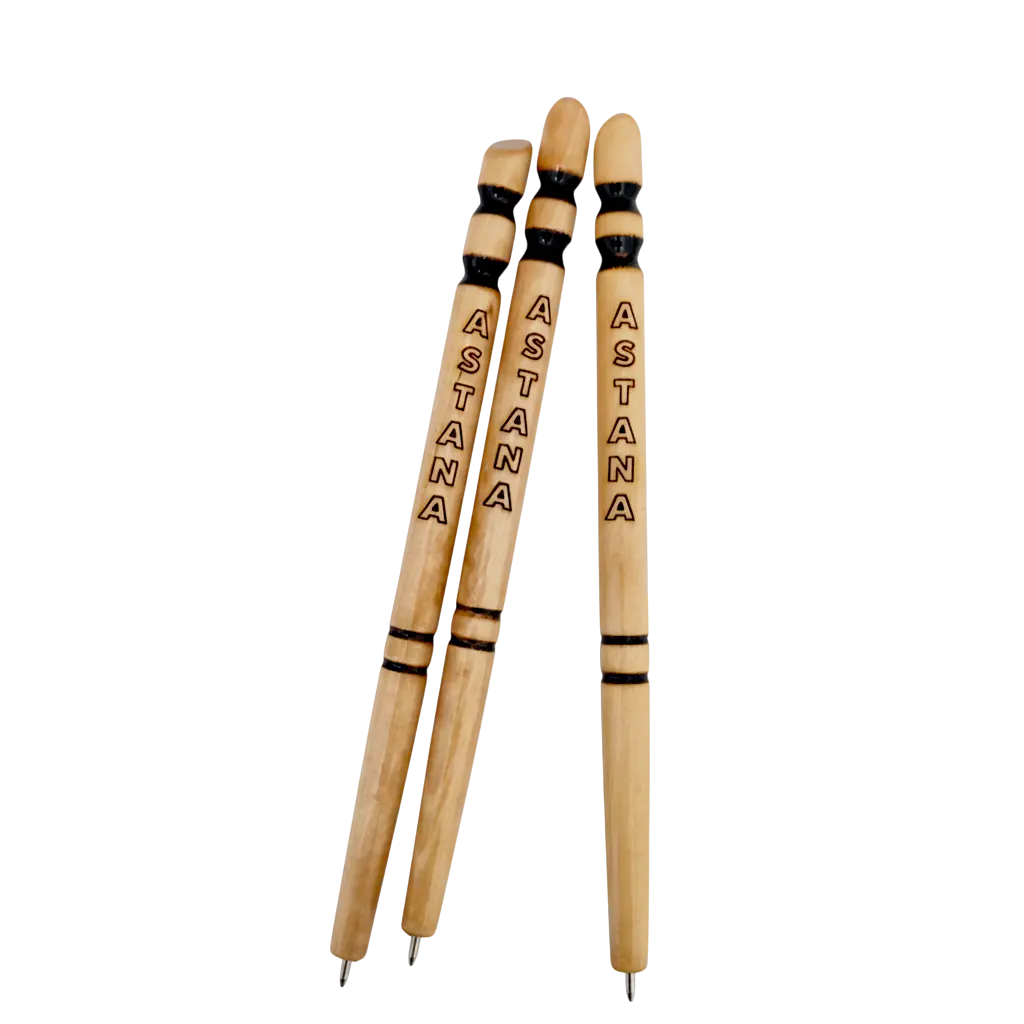 Стильная шариковая ручка из натурального дерева. Лазерная гравировка «ASTANA», удобный круглый корпус и мягкое письмо. Идеальный сувенир и практичный аксессуар для офиса.